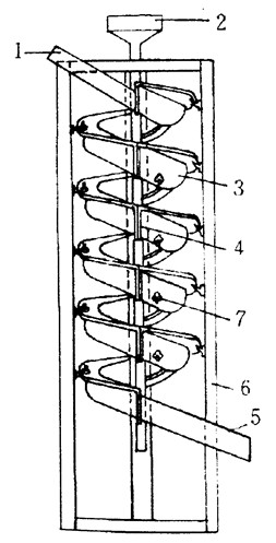 5—尾礦排出溜槽;6—機架;7—重礦物排出管口