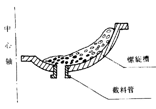 螺旋選礦機的結構如圖1所示。它是把一個溜槽繞垂直軸線彎曲成螺旋狀而做成的,螺旋有3~5圈,固定在垂直的支架上,螺旋槽的斷面為拋物線或橢圓的一部分,槽底在縱向(沿礦流流動方向)和橫向(徑向)均有一定的傾斜度。由第二圈開始,大約在槽底中間部位設有重產物排料管(共4~6個),排料管上部裝有截料器,它能攔截重礦物流使之進入排礦管排出,截料器的兩個刮板壓緊在槽面上,且其中的可動刮板可以旋轉用來調節兩刮板間張口角度大小,從而調節重礦物的排出量,如圖2所示。為提高重產物的質量,在槽內緣設有若干個加水點,稱為洗滌水,它由中央水管經過閥門給入槽內緣。